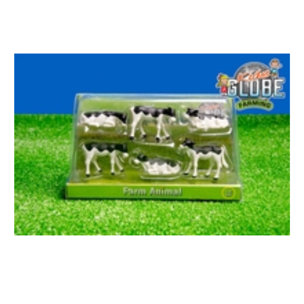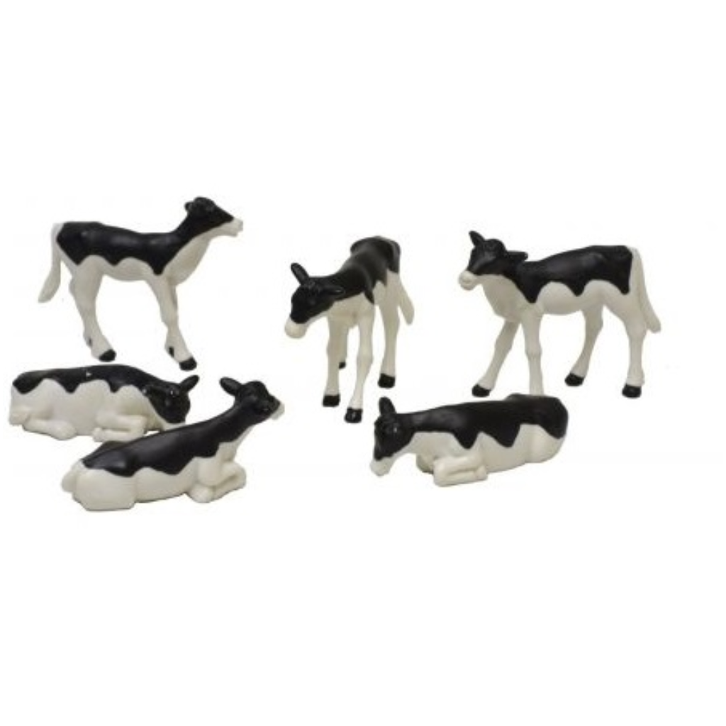 Kids Globe 571974 - Kids Globe 571974 calves 1:32 black and white 6 pieces(KG571974). The Kids Globe calves are supplied in a set of 6 pieces. The KidsGlobe 571974 calves are cute animals on a scale of 1:32 which fit well with the other farm toy items from Siku, Britains and of course Kids Globe. The standard scale of 1:32 means that the Kids Globe 571964 fits well with the other 1:32 animals from Kids Globe, but also the large toy farms. The Kids Globe 571974 calves are all different, so you don`t get a whole collection of identical animals. The Kids Globe calves are black and white in colour.