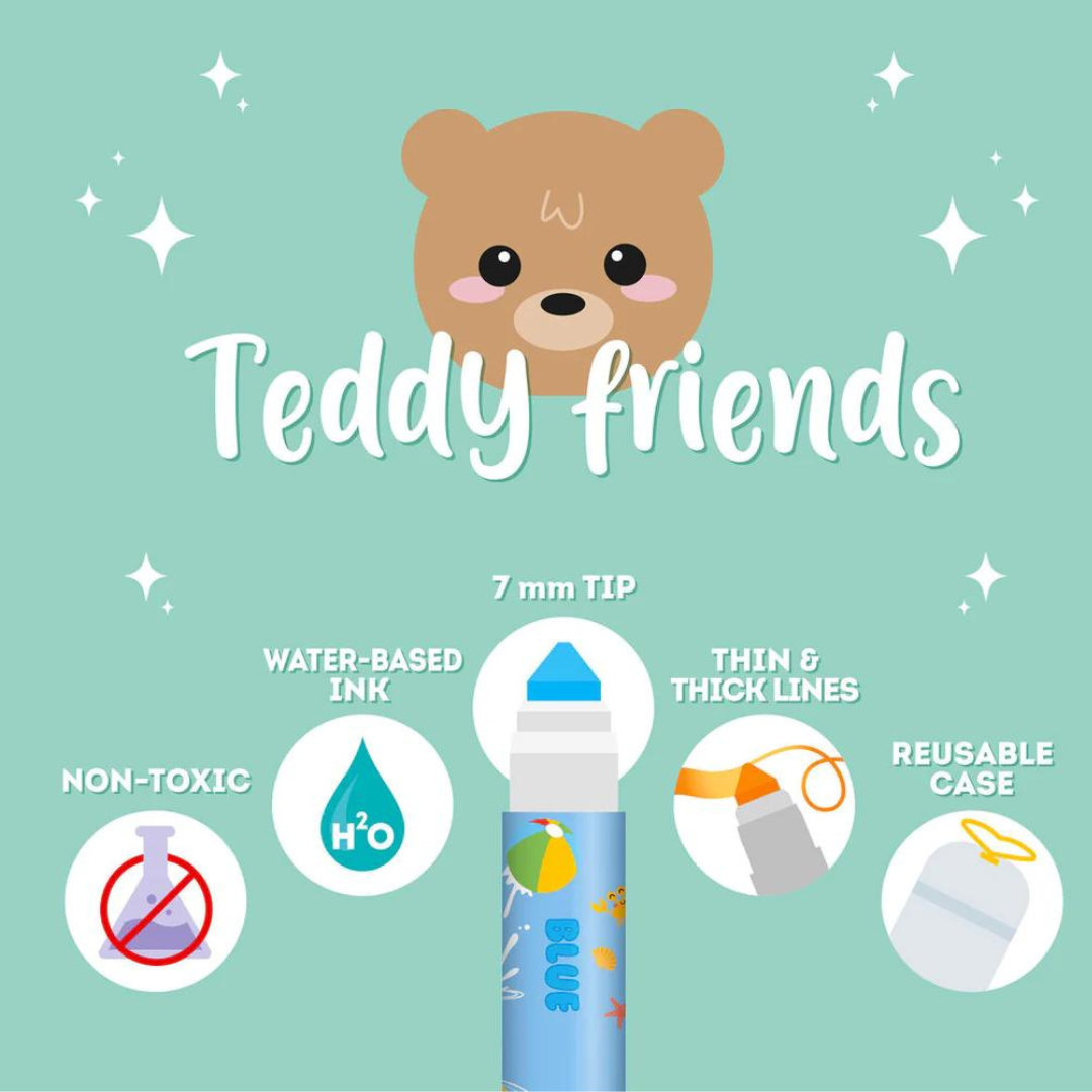 Make colouring in even more fun with these adorable teddy bear markers! Each of the 12 colours has a different cute bear who's ready to help you with your colouring!