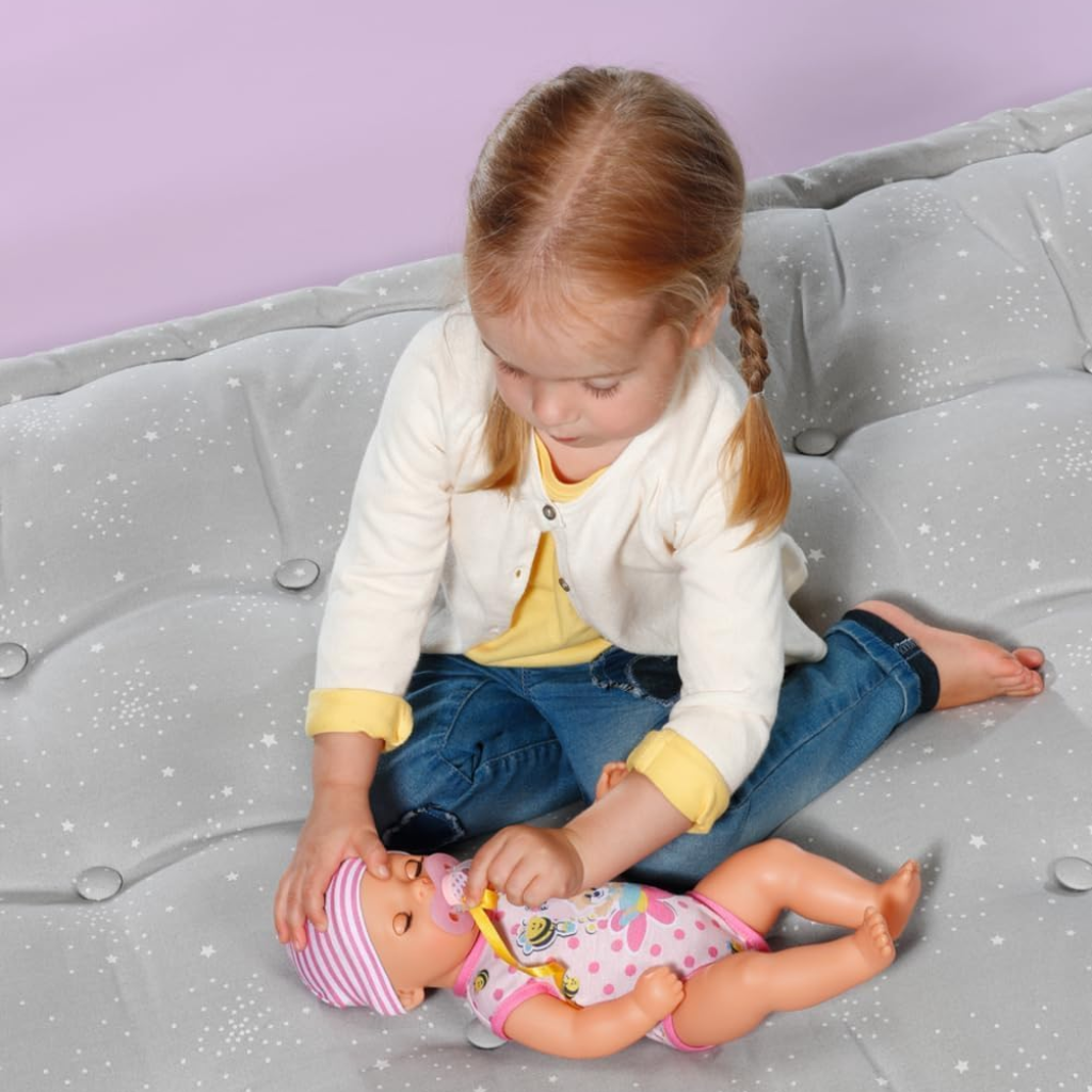 - 7 age-appropriate functions: BABY Born Little can drink, put in the nappy, potty, bathe and sleep. It is super flexible and also brings a magical dummy with you