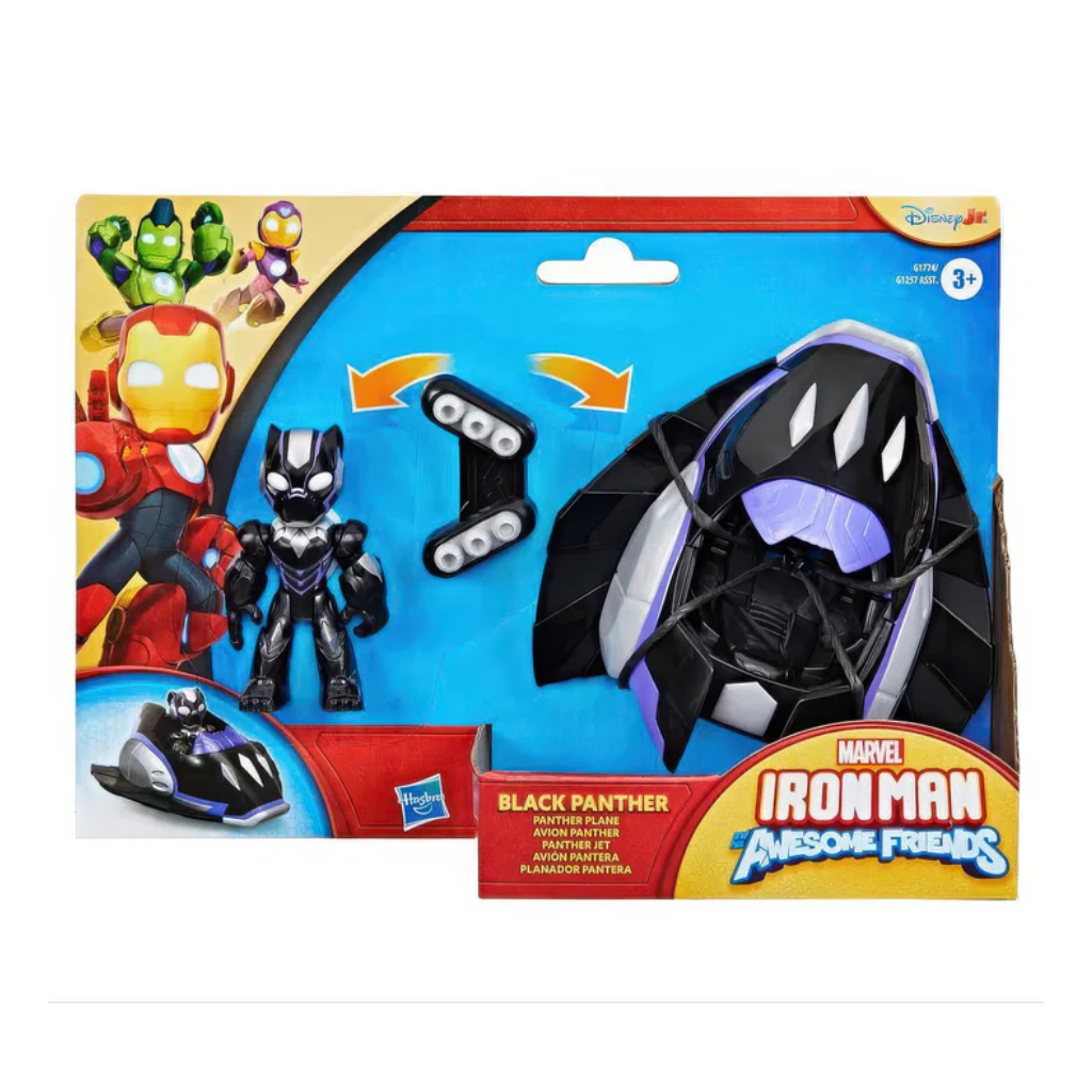 Get ready for high-flying adventures with the Marvel Iron Man and His Awesome Friends Vehicle and Figure set featuring Black Panther! This exciting playset from TOYBOX combines a detailed 10 cm action figure with a snap-on jet plane upgrade, transforming ordinary playtime into extraordinary superhero missions across the skies of Wakanda and beyond.