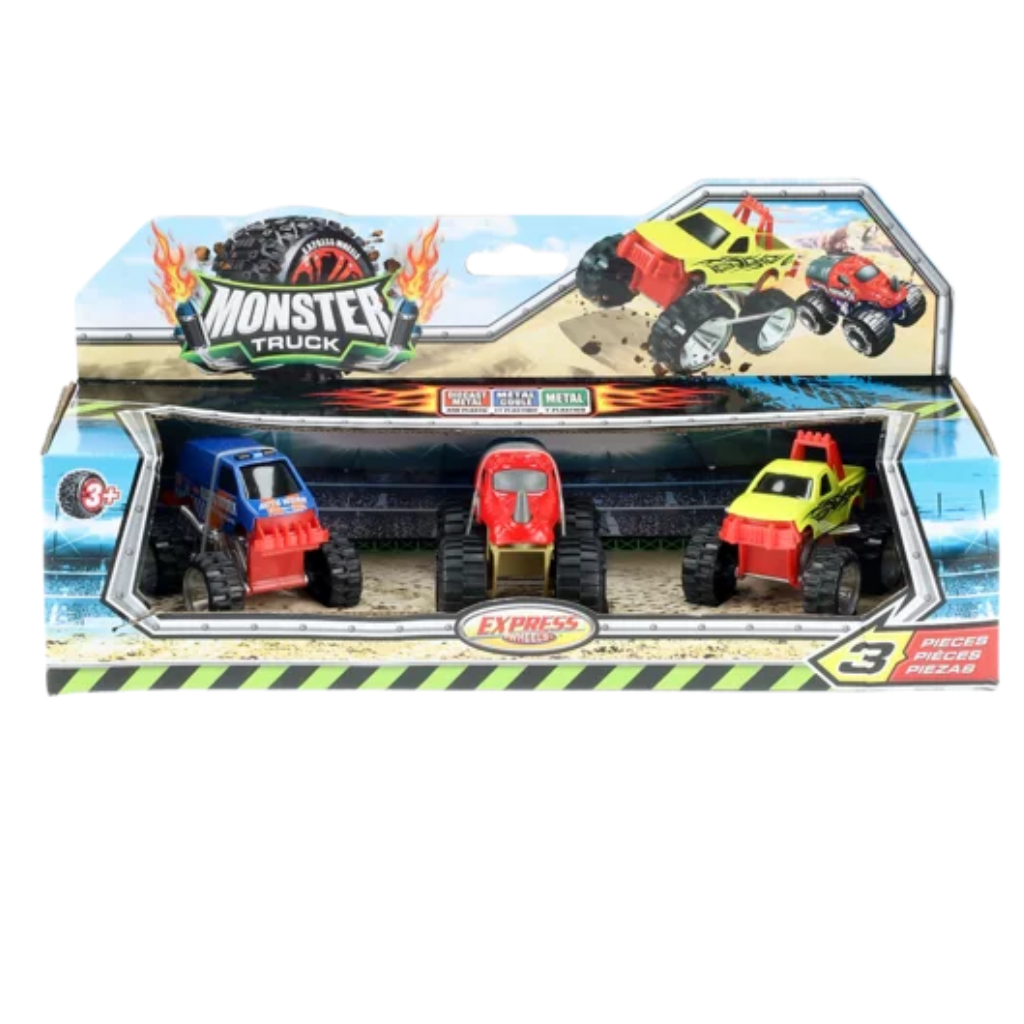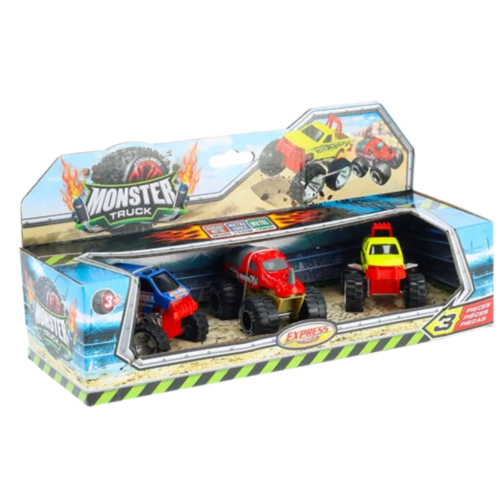 These monster trucks feature bright colours and chunky wheels. They are easy to store.