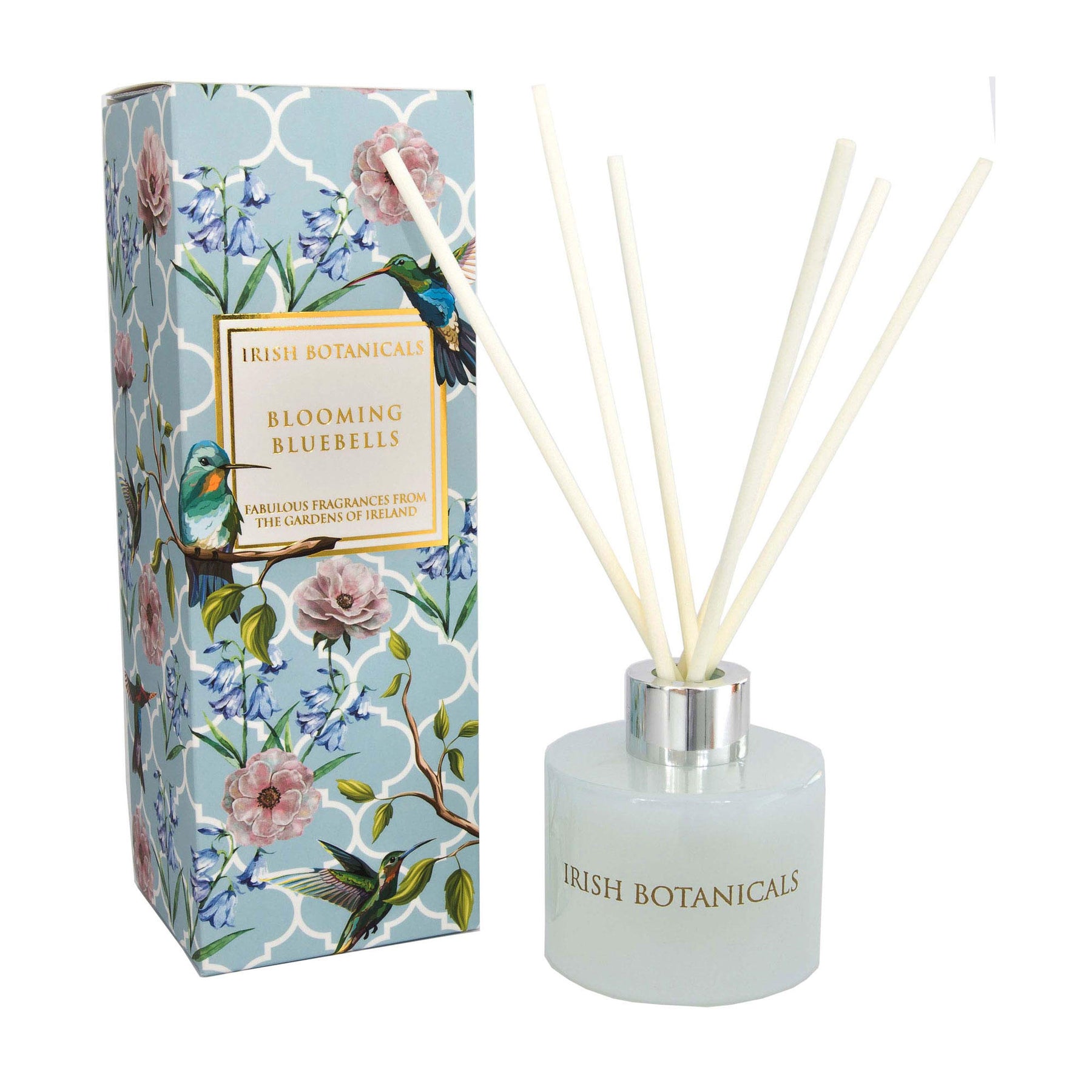 Blooming bluebells Diffuser. This gorgeous and refreshing scent is so perfect for summer. A stunning mix of fresh bluebells with notes of lemon and freesia make this so, light, refreshing and simple.6 reed sticks provided. Turn weekly to renew scent throw. Packaged in gorgeous Irish Botanicals signature gift box.