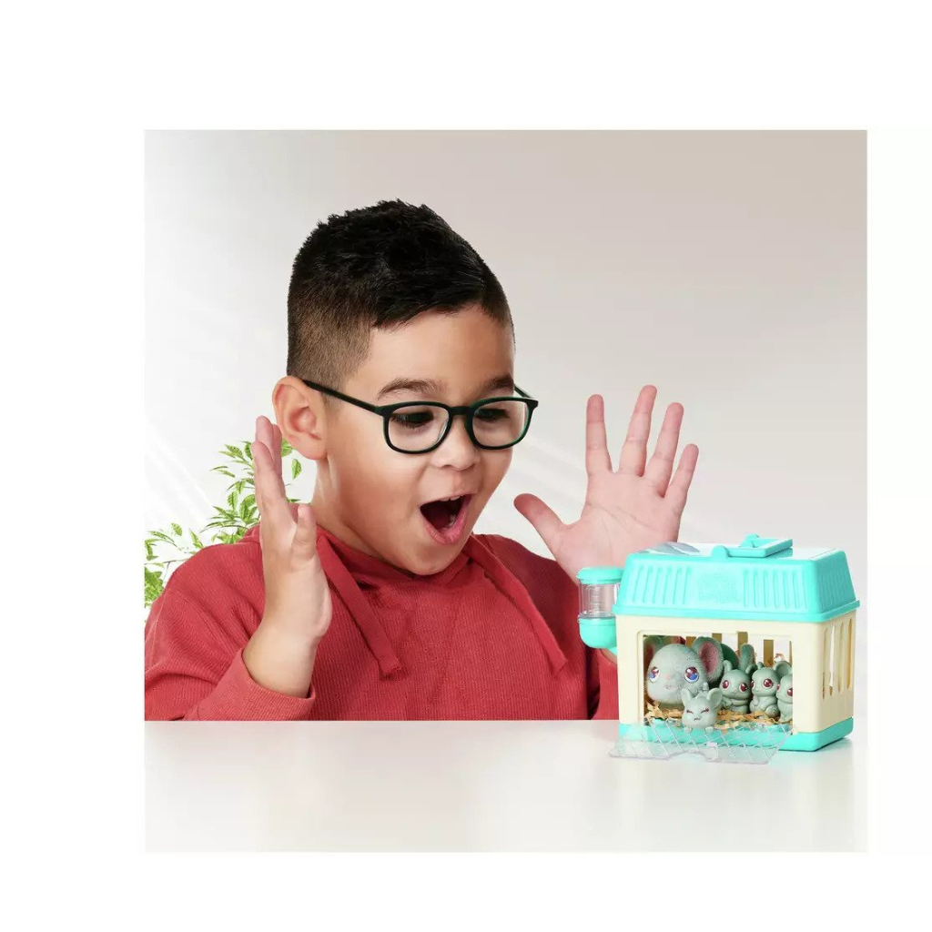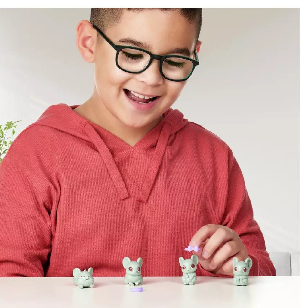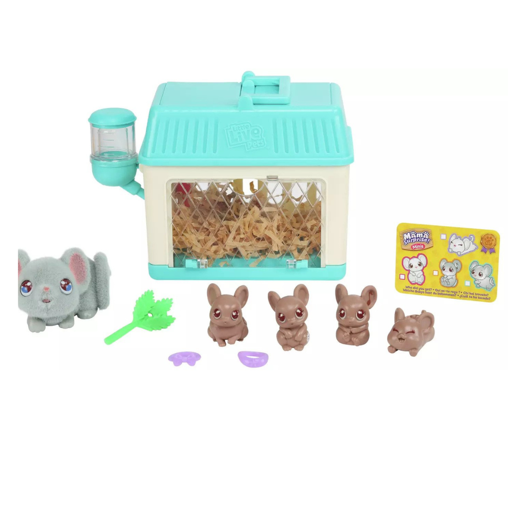This cuddly mouse mummy is expecting babies! Feed her the toy celery and give her some water. Once the babies arrive, you'll have lots of friends to play with!