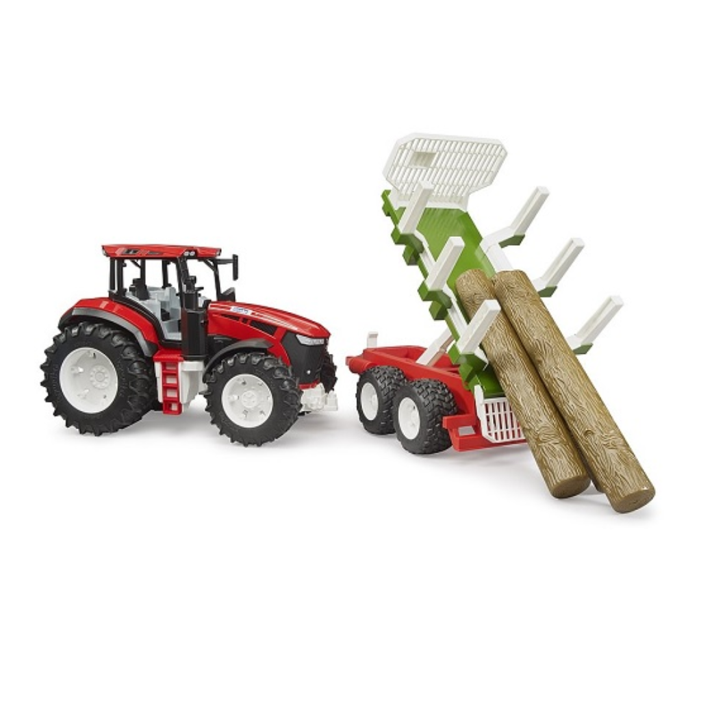 The ROADMAX brand is very popular with our youngest customers. For this reason it is only logical to expand other theme worlds with ROADMAX items. With the new ROADMAX tractor with forwarding trailer and tree trunks, BRUDER presents another great vehicle combination in the forestry theme world for children from 2 years of age. The model has a detailed cab and large, tractor-typical tread tyres. For even more fun, this combination includes a working forwarding trailer with 3 logs and a tiltable loading area.