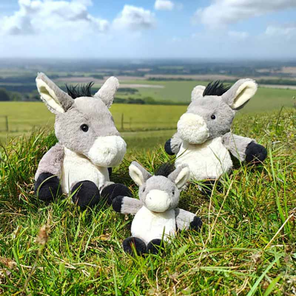 Our All Creatures Cleo Donkey is a gorgeously soft and squidgy farmyard friend. Cleo has super soft grey plush with a cream tummy, cute floppy ears and a fabulous black mane with matching fluffy tail. Perfect for snuggles and complete with beans in her bottom so that she can sit, pose and play. Hee-Hawww!