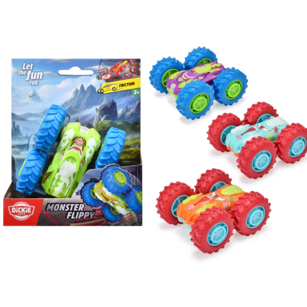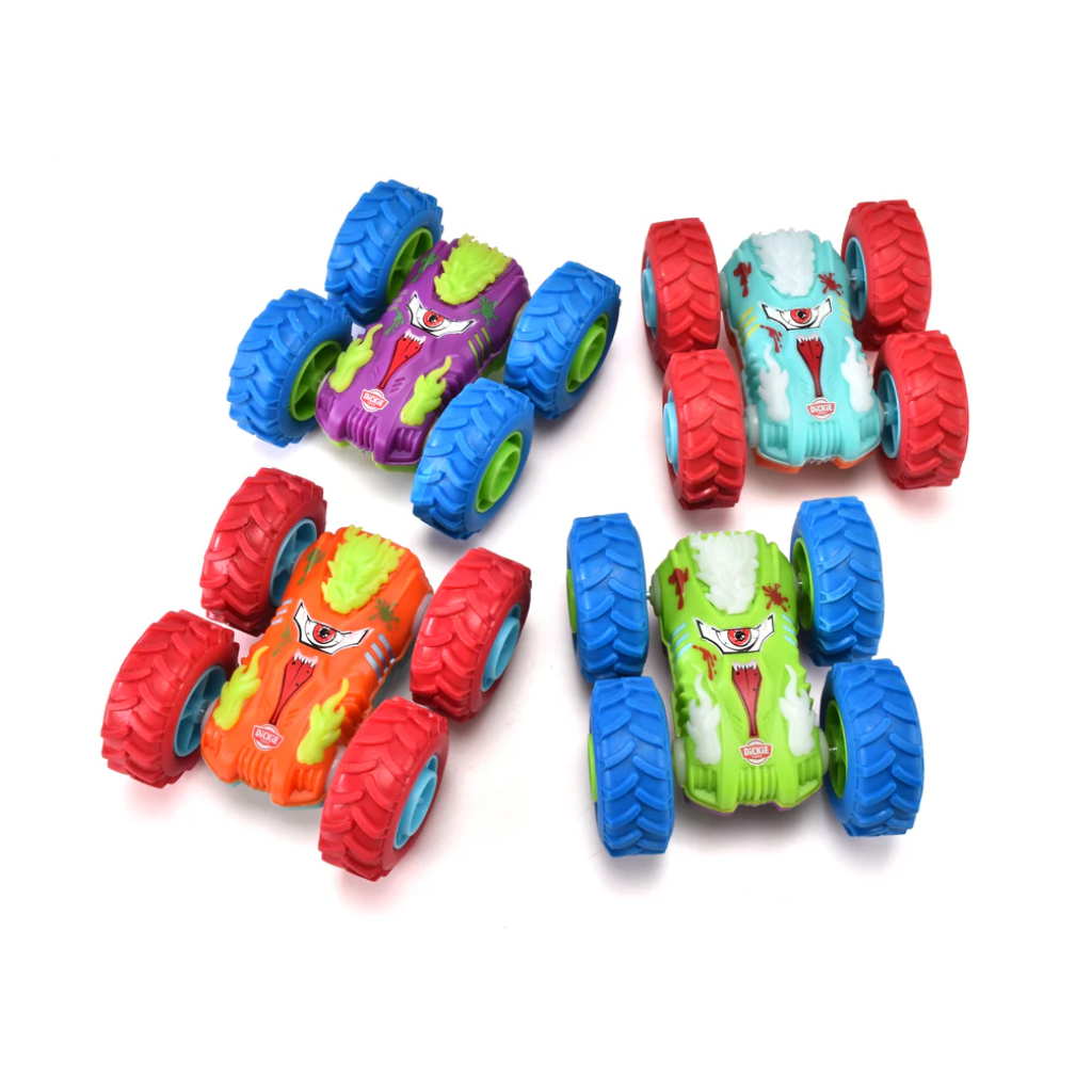 Dickie Toys – Monster Flippy Car (10 cm) – colourful flipping toy car for children aged 3 and up with friction drive and rubber tyres (4 assorted pieces, random selection)