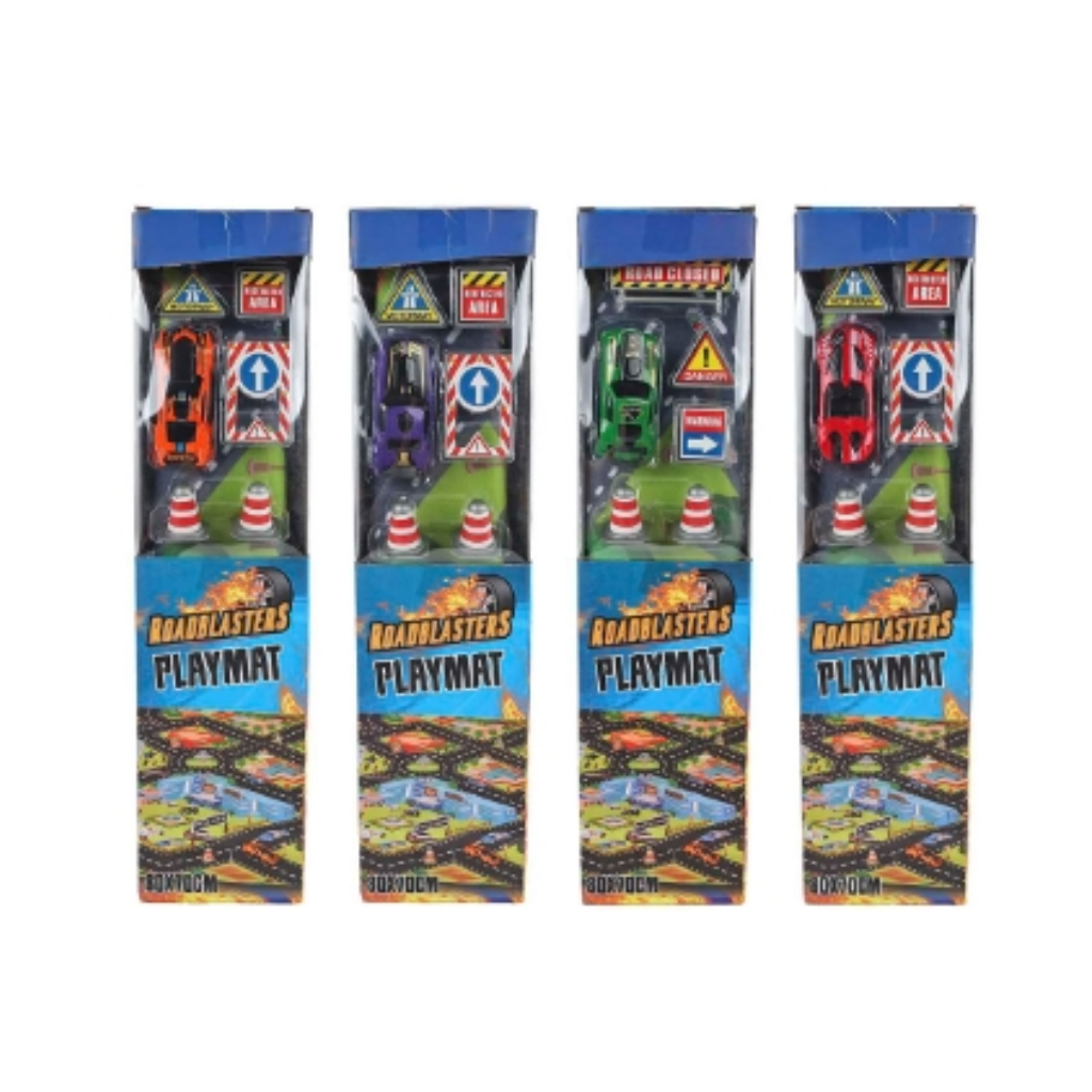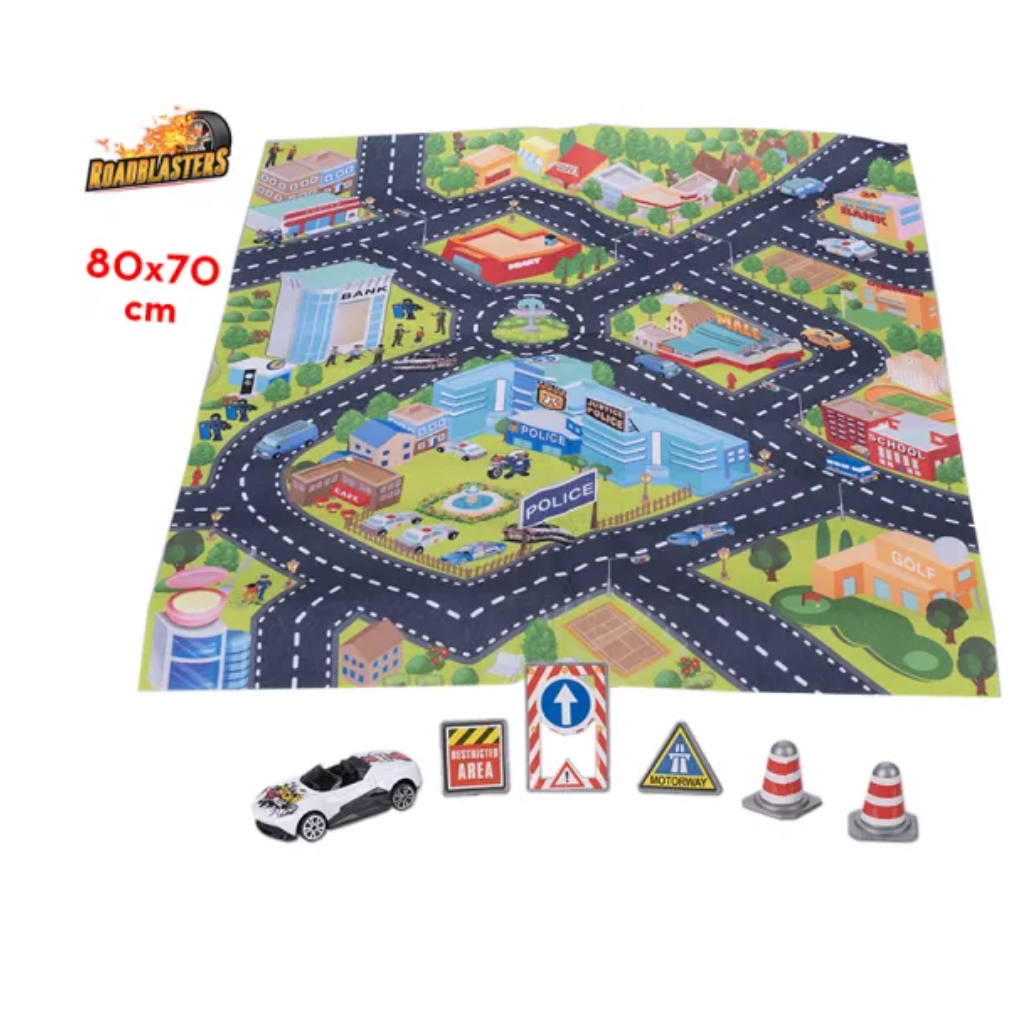 Roadblasters traffic rug 80x70 cm with car and accessories. Suitable for children from 3 years.
