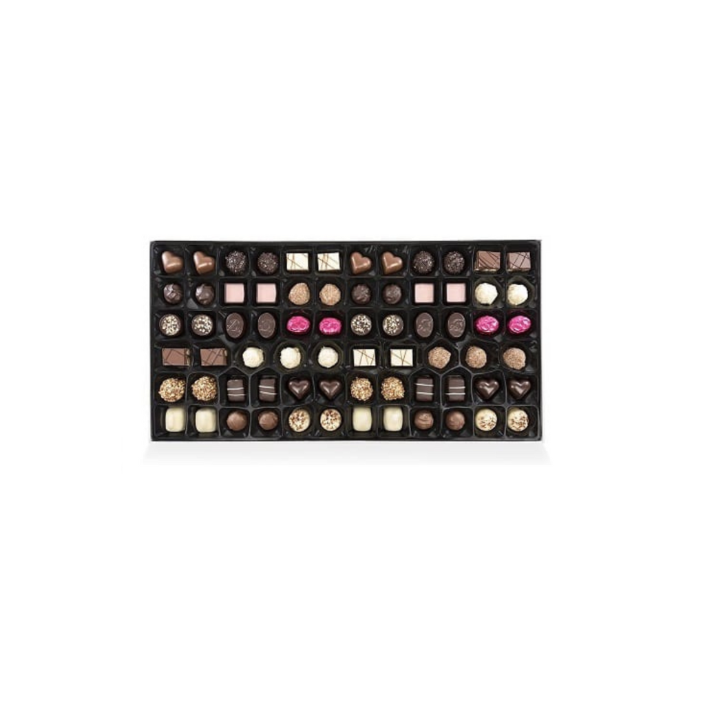 The assortment is stunningly presented in a handmade, rigid presentation box and handtied with a luxurious ribbon. The selection has been carefully chosen by our master chocolatiers for you and yours to enjoy. The search for the ultimate chocolate gift is over
