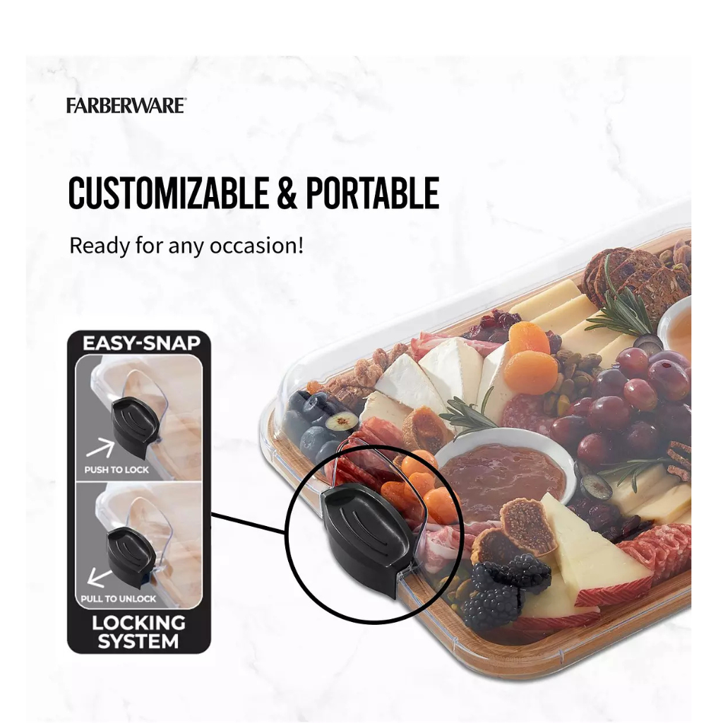 Faberware Build-a-board Bamboo Grazing Board, Portable Snack Box With Rectangle Chopping Board, Clear Bpa-free Lid And Black Locking Handles, Transparent And Reusable Serving Board, 28 X 35.5cm