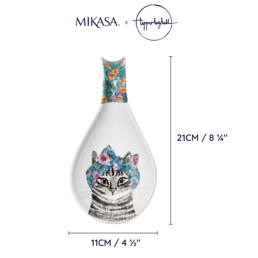 Keep your kitchen tidy with our 21 x 11 x 3 cm illustrated cat spoon rest. Made from durable ceramic, it prevents drips and stains on your countertops. It is a heat-resistant spoon holder that accommodates all types of spoons, ladles, and utensils, making it a versatile addition to your kitchen. It is dishwasher-safe for added convenience. Use it while cooking or serving to enhance your dining experience.