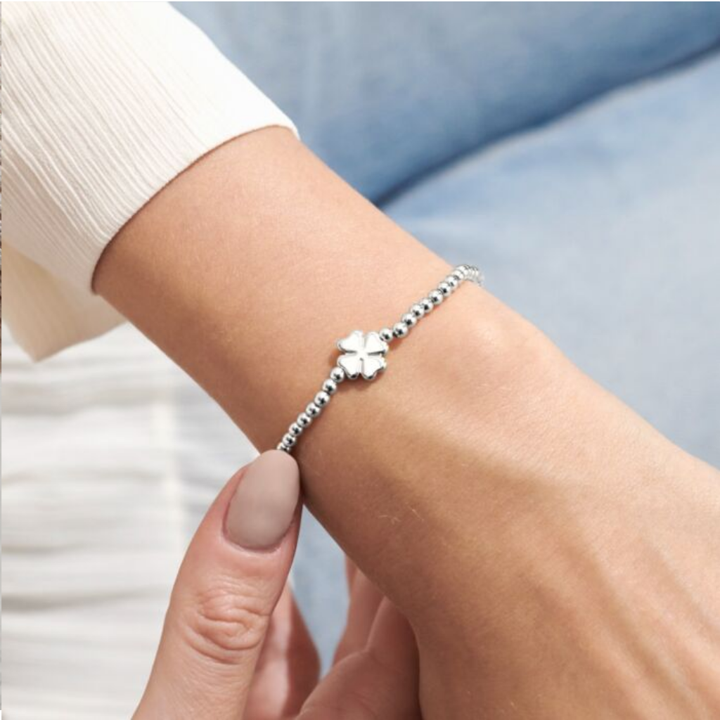 Say hello to our world-famous A Little Collection! Our A Little 'Luck' Bracelet In Silver Plating features a captivating stretch design and a sweet four-leaf clover charm. Wrapped around one of our stylised cards and framed with a sweet sentiment, this piece is sure to make a standout gift and a wonderful addition to your loved one's collection.