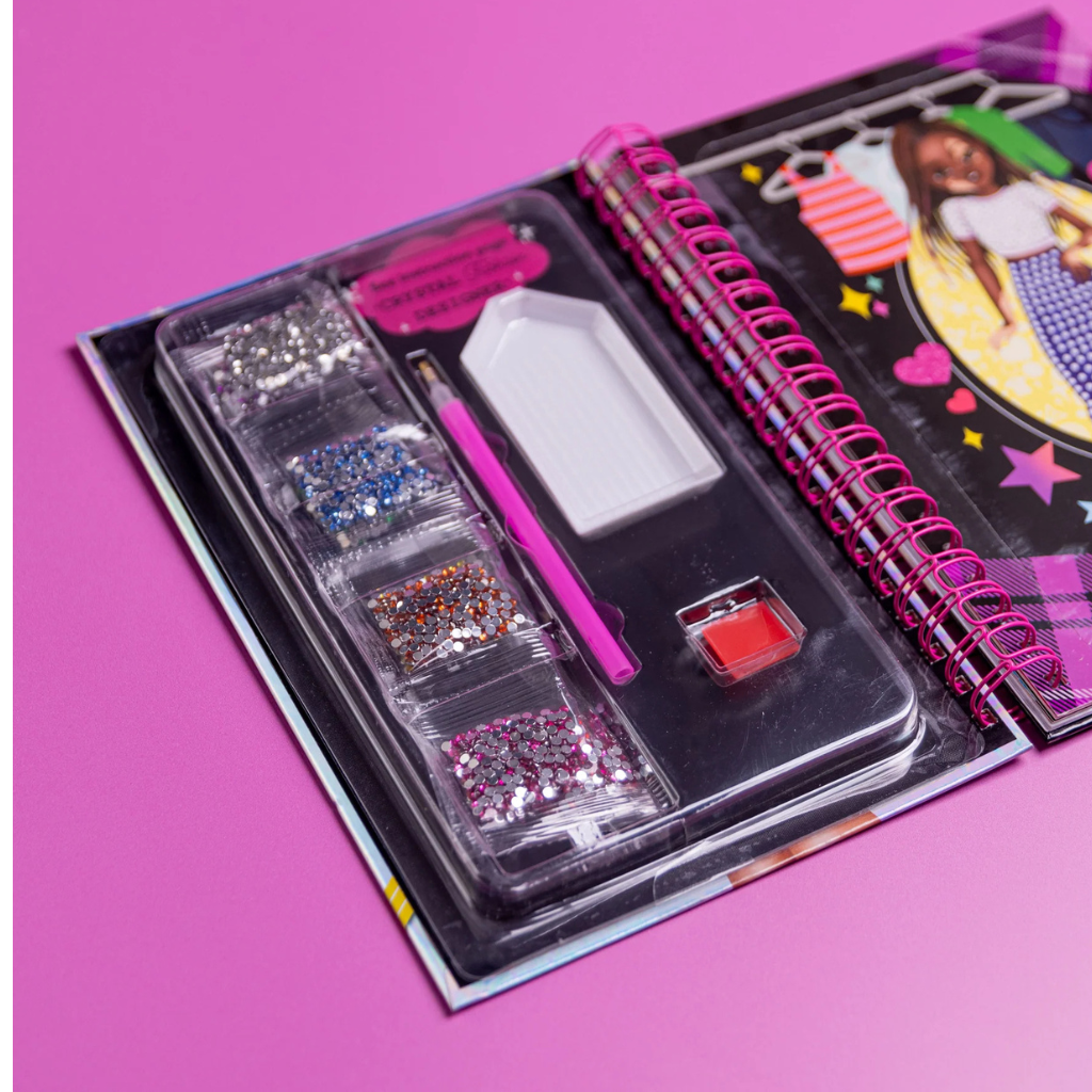 Packed with inspiration and sparkle, this creative set includes 20 sketchbook pages for you to sketch, style, and bring your fashion ideas to life, plus 6 extra pages of crystal art to add brilliant, runway-ready embellishments.
