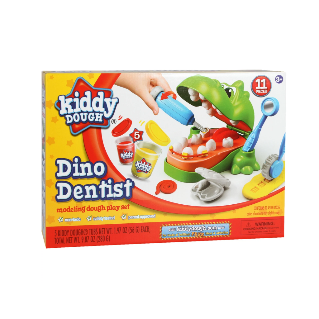 Even if it can be a little scary to go to the dentist, kids can take control and play pretend Dino dentist with this Kiddy Doh playset. Mold big dino teeth and practice polishing them with all the tools needed like a true dentist.