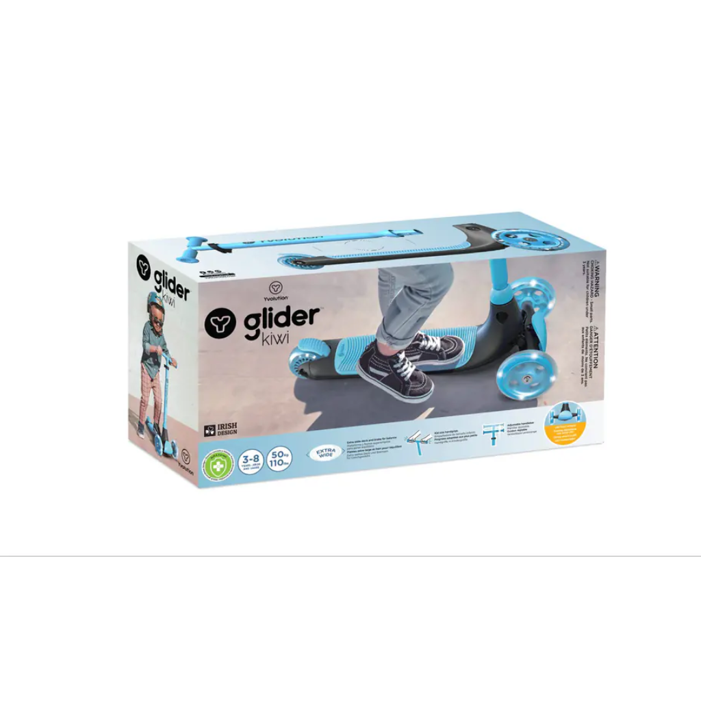 The Y Glider Kiwi is our new sleek three-wheeled kids scooter that comes with the latest comforts including easy grip handlebars, extra wide deck for side-by-side foot placement and safety and a wide rear foot brake.
