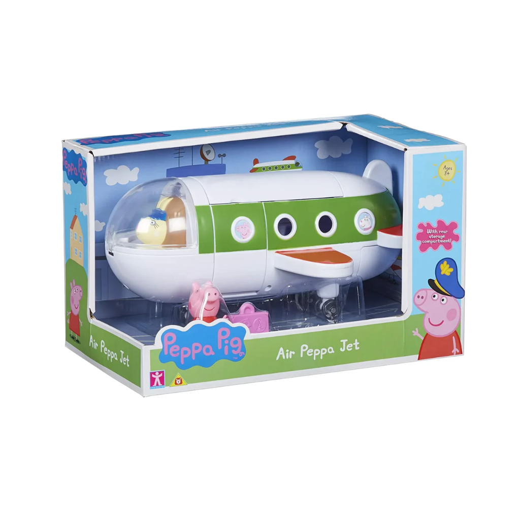 Let your little one soar into imaginative adventures with the Peppa Pig Air Peppa Jet Toy. This free rolling jet features an opening cabin, folding stairs, and rear luggage storage. Includes a Peppa figure, two suitcases, and a flip over seat with Miss Rabbit in the cockpit. Perfect for preschoolers who love travel themed play.