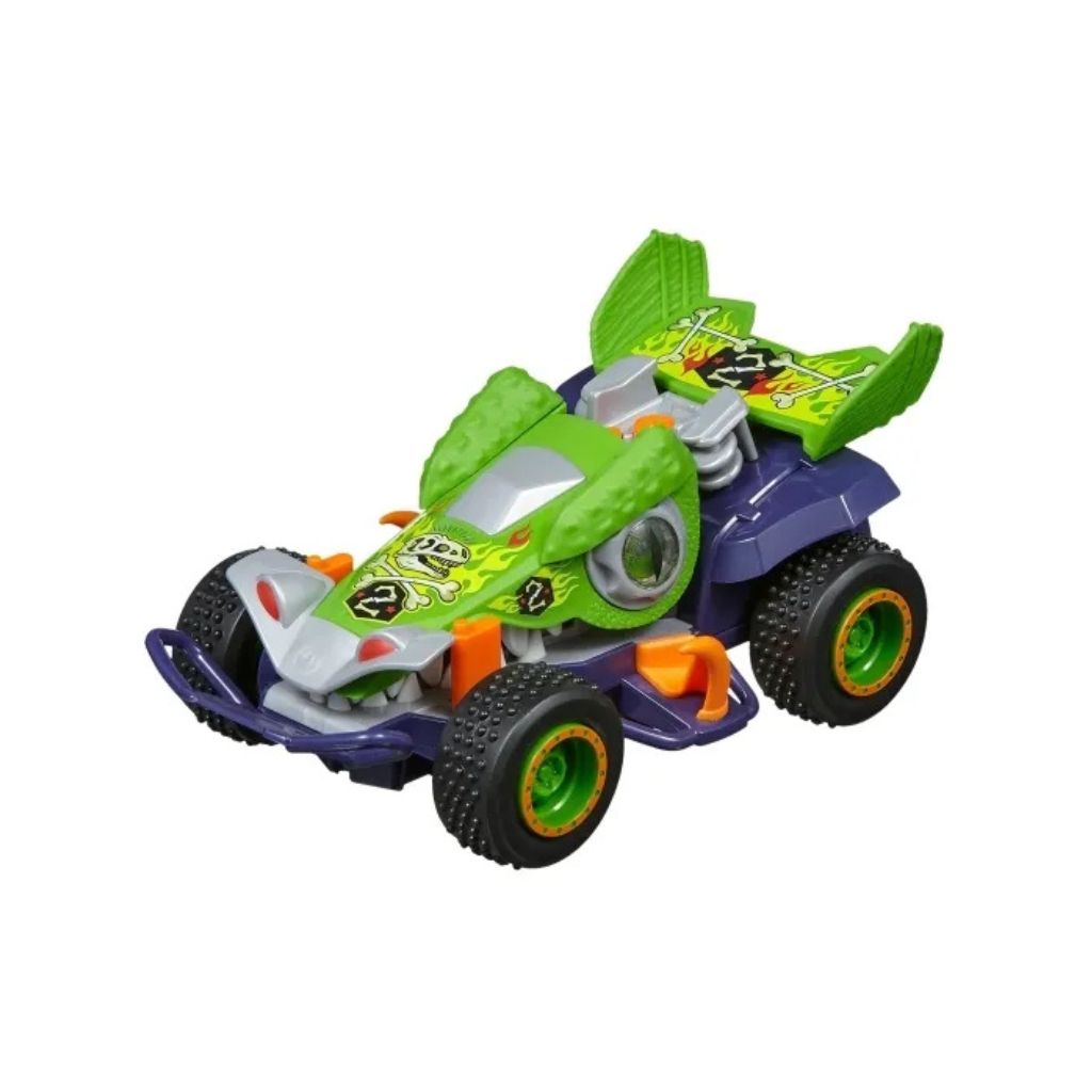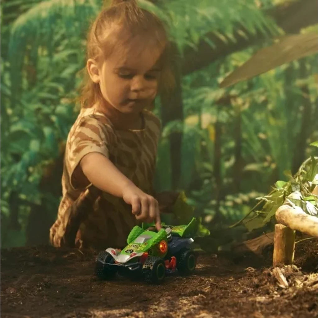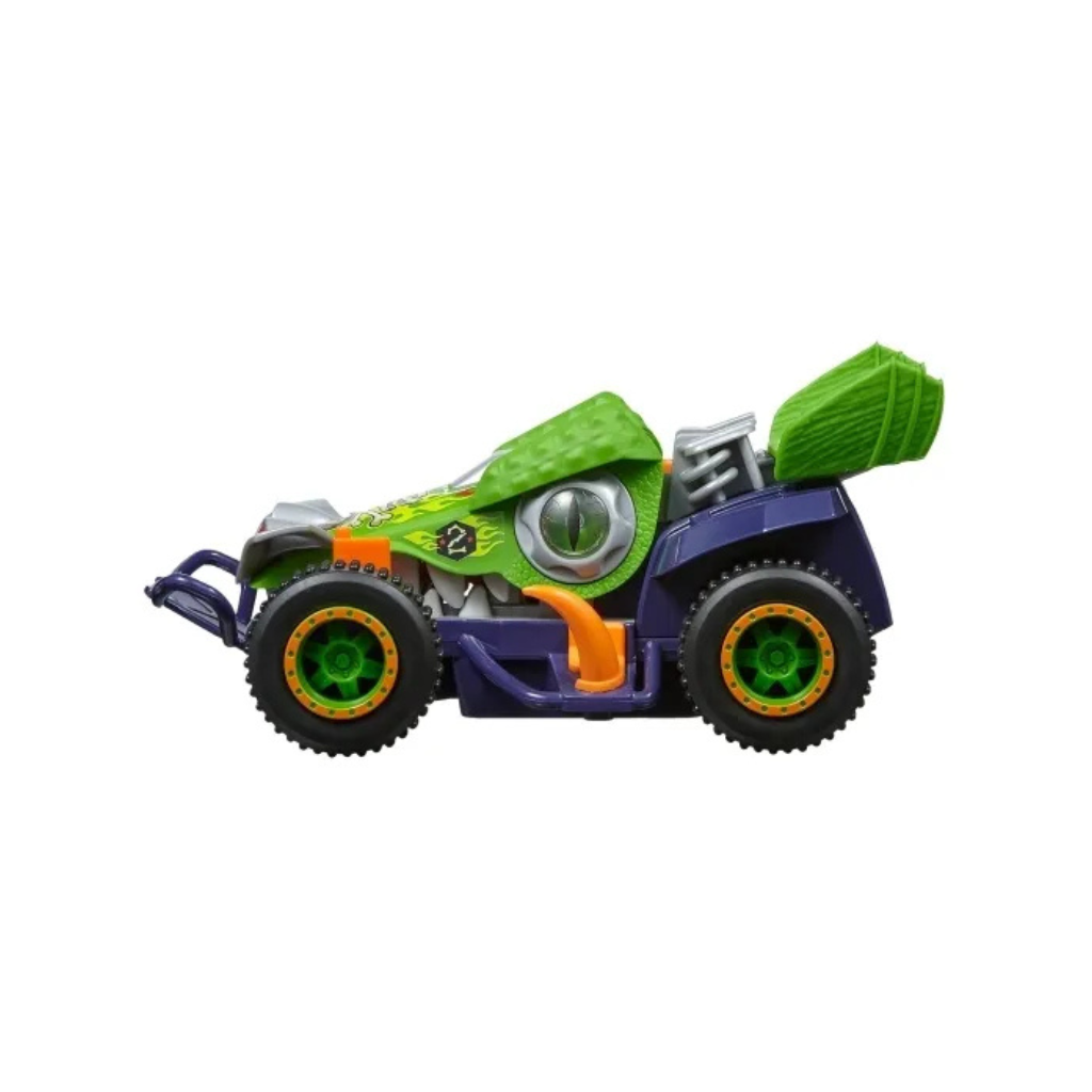 Illuminator Road Rippers Car. Incredible and ferocious racing buggy with an extreme and groundbreaking design. The Tricera truck has unstoppable headbutting power. The Triceratops has a snapping mouth and big, glowing eyes. These cars include super-realistic lights and sounds to add excitement to playtime. Motorized driving. Requires 3 AA batteries (included). Approximate car dimensions: 20 cm wide x 10 cm high x 12 cm deep. Approximate packaging dimensions: 24 cm wide x 15 cm high x 16.5 cm deep. Age |