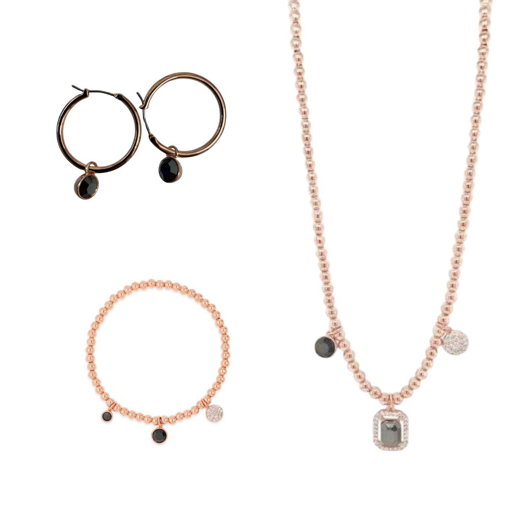 When you want unique, sparkly jewellery that looks equally stunning on formal occasions and casual Friday—or to wear all day and night, this bracelet is for you. With black gemstones and a crystal filled pendant, this bracelet can be worn solo or stacked with other bracelets and necklaces from the same collection