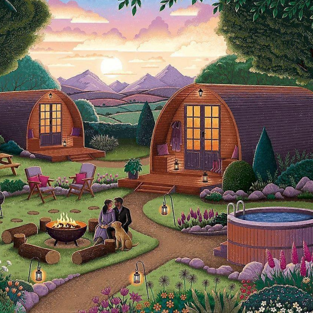 Glamping is a quality 1000-piece jigsaw puzzle which is part of the Falcon Deluxe Collection.Artist: James Newman GraySize of completed puzzle: 68 x 49cmAs with all Falcon Deluxe jigsaw puzzles, this puzzle is made of quality cardboard to ensure every jigsaw piece maintains its original shape during use and has a poster-like finish. The puzzles are made of recycled cardboard and the linen-finish paper lends your puzzle a luxurious look. All Jumbo puzzles are produced using an extra fine die-cutter, maintaining an exceptionally high level of quality for enthusiasts the world over.