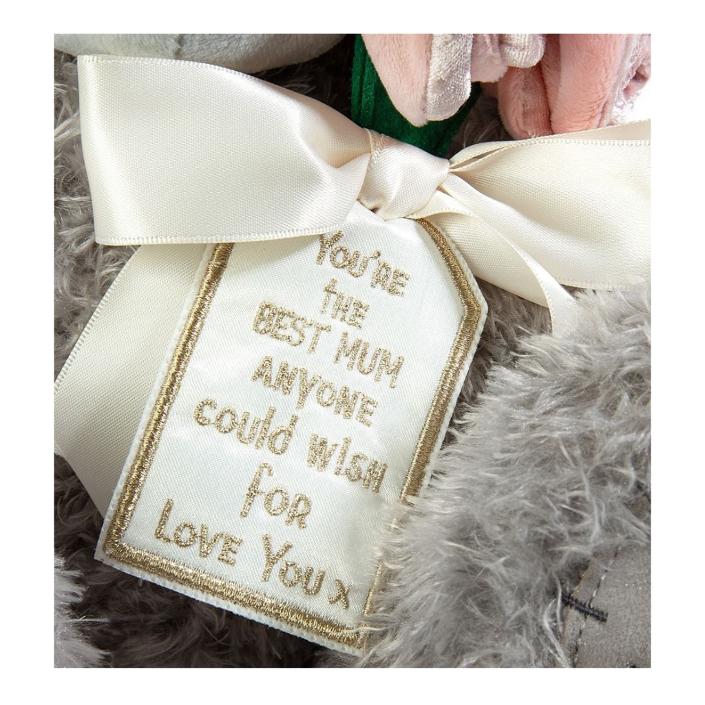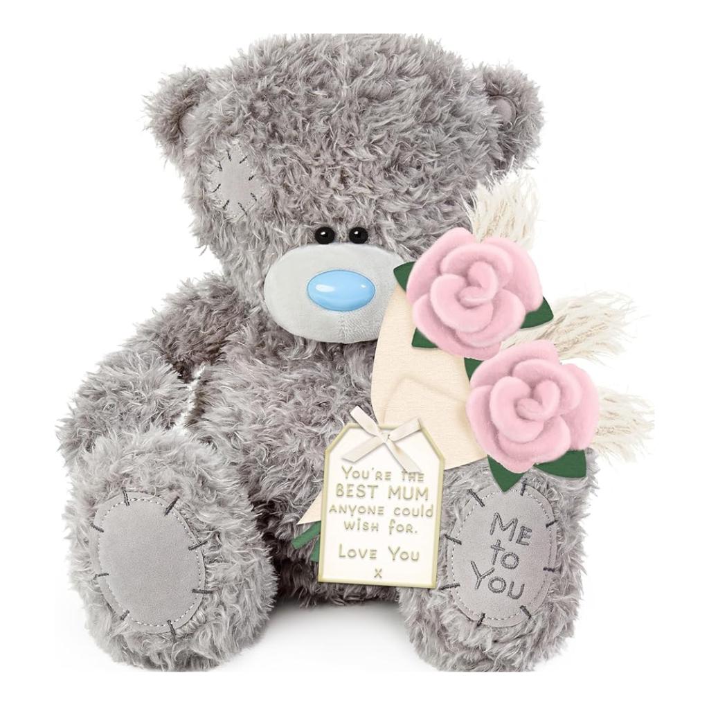Me to You Tatty Teddy Large Luxury 'Best Mum' Plush Bear With Velvet Flowers 27cm High Official Mother's Day Collection. Make Mother's Day truly special with this adorable large Tatty Teddy bear holding a pretty bouquet of velvet flowers. Tatty Teddy sits 27cm high - the perfect size for a bear hug! - and the satin tag on the bouquet is embroidered with the heartfelt message 'You're the best mum anyone could wish for. Love you x'. This gorgeous Tatty Teddy is sure to make Mum smile on Mother's Day and all through the year!