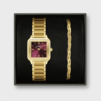 Gift Box Gracieuse Petite Watch Steel, Dark Cherry & Braided Snake Bracelet, Gold Colour