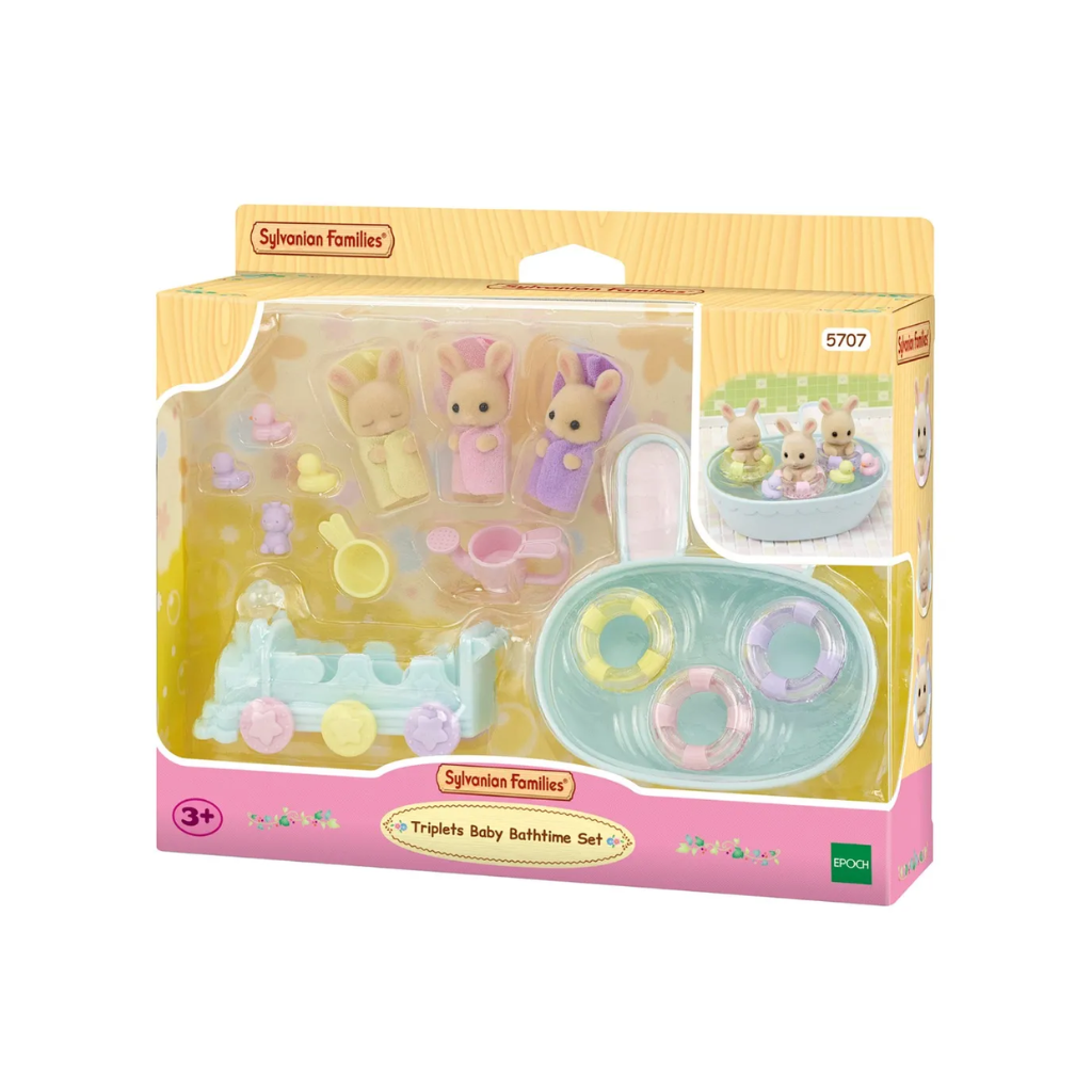 Sylvanian Families Triplets Baby Bathtime Set Features The Tiny Milk Rabbit Triplets, Along With Everything They Need For A Fun-Filled Bath Time. Introducing The Milk Rabbit Triplets Isla, Iris And Owen. Includes A Pushcart For The Triplets To Ride In And Plenty Of Bath Toys And Accessories. Each Of The Triplets Has A Different Expression