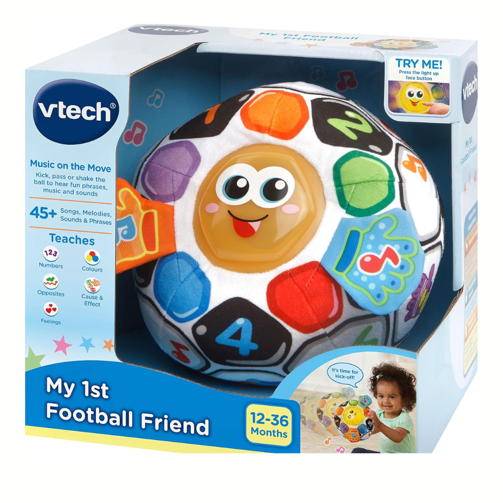 - IDEAL GIFT: VTech's My First Football Friend is the ideal birthday or Christmas gift for any toddler, stimulating their sensory play, while improving their hand-eye coordination and auditory learning