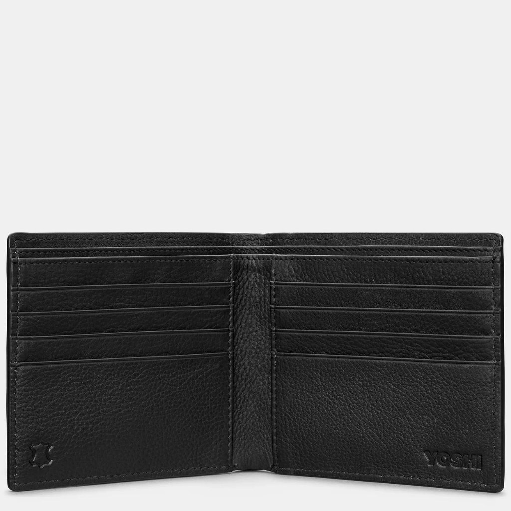 Our two fold black leather wallet for men is a slimline classic shape that fits nicely into any pocket. It has 8 credit card slots, double note section, 2 slip pockets, and RFID Protection.