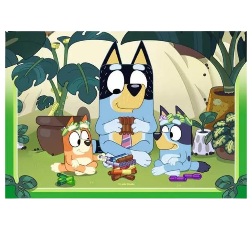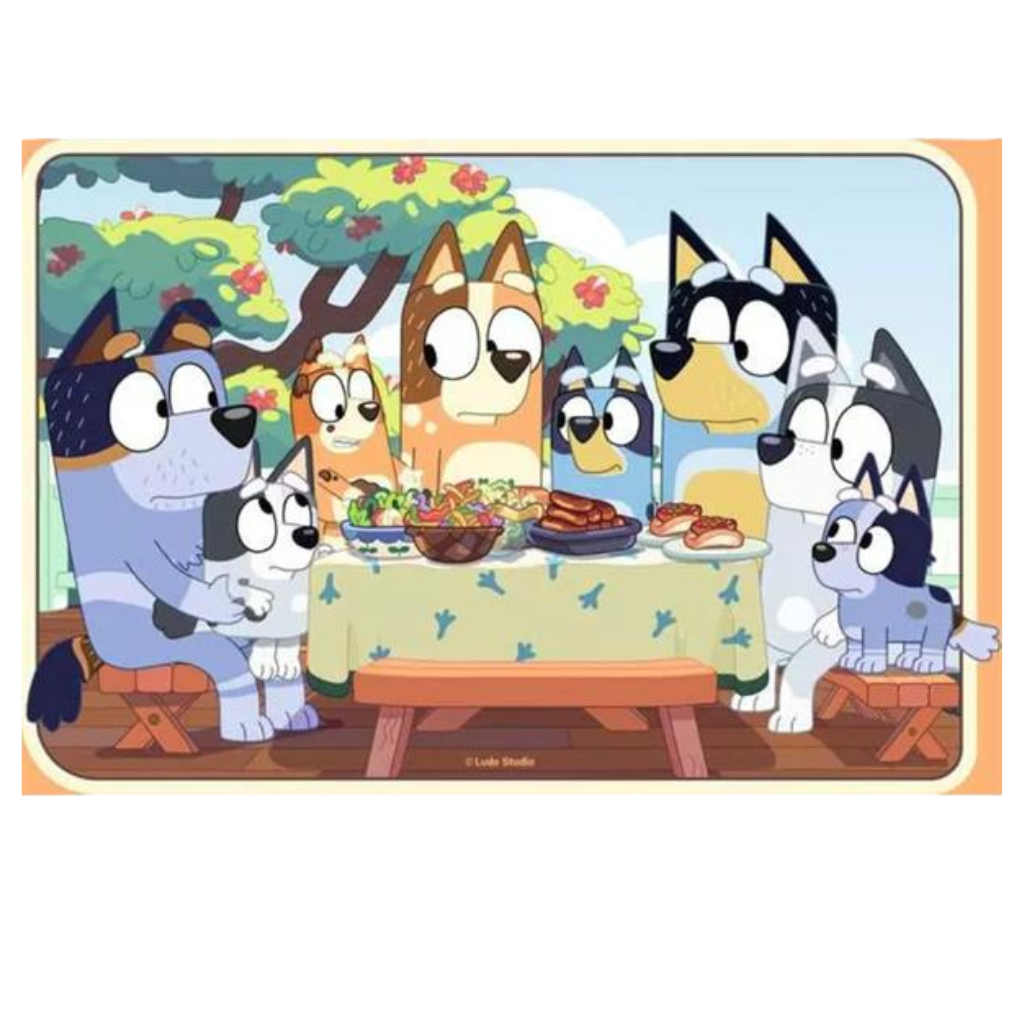Join Bluey, Chilli, Bandit, Bingo, Muffin, Socks, Aunt Trixie and Uncle Stripe as they enjoy a delicious lunch in the wonderful sunshine, before Bingo and Bluey head out for an afternoon adventure with Dad, Bandit! These two bright and colourful puzzles are a must have for any Bluey fan.