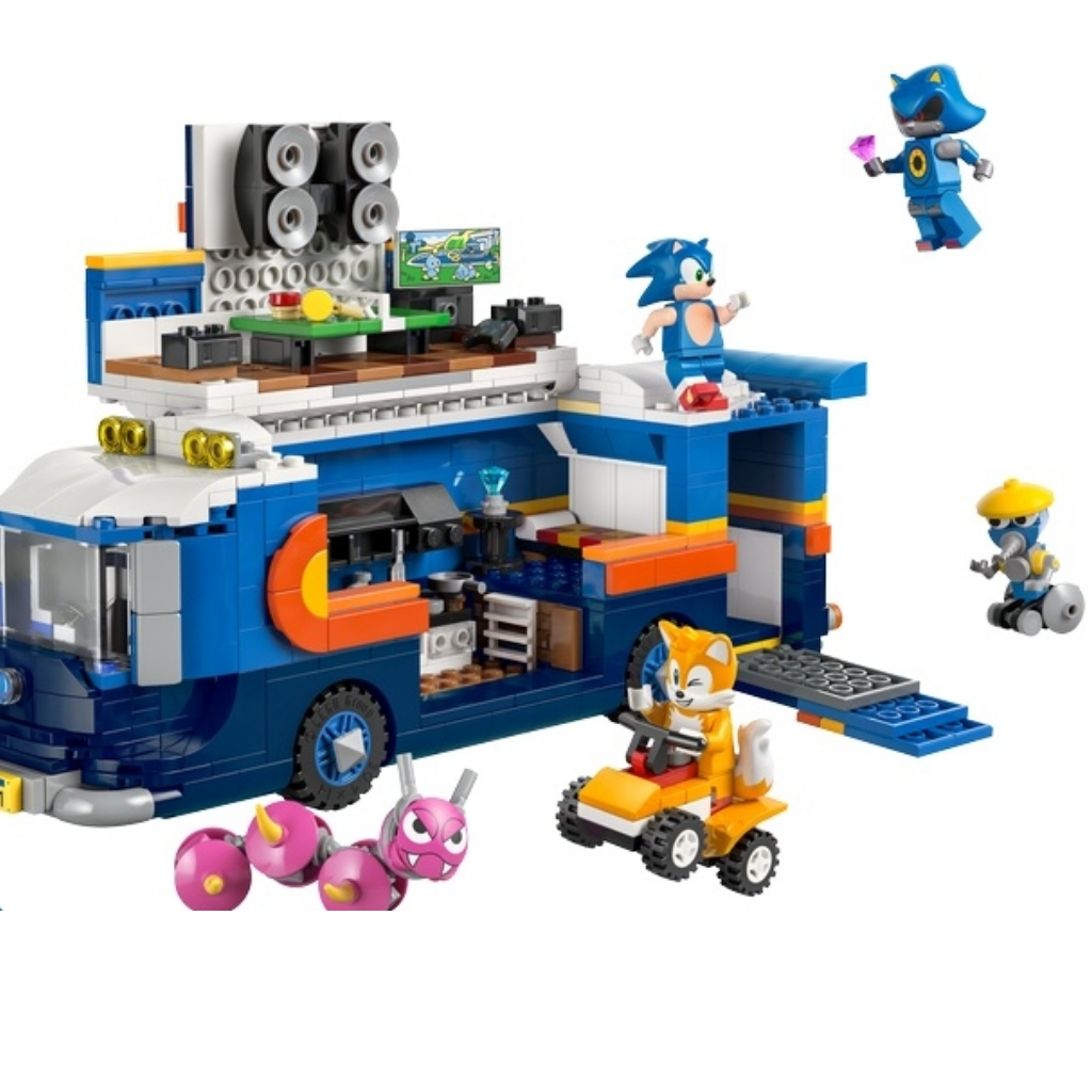 • The action’s inside – Features Sonic, Tails and Metal Sonic LEGO minifigures, Burrobot and Caterkiller figures and a truck with a cabin, storage area and a ramp for an ATV toy