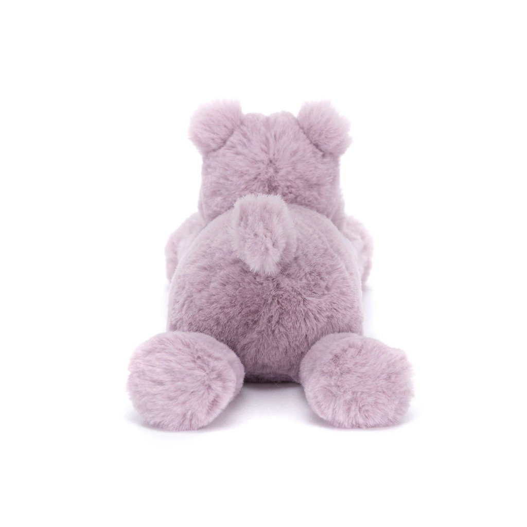 The widest smile on the savannah! Smudge Hippo is a smiling sweetie in super soft lilac fur. With dainty ears, stitched nostrils and a curved tail, this lilac lovely has long legs and a squishy tummy. A loving companion, Smudge Hippo is a great gift for any bouncing baby